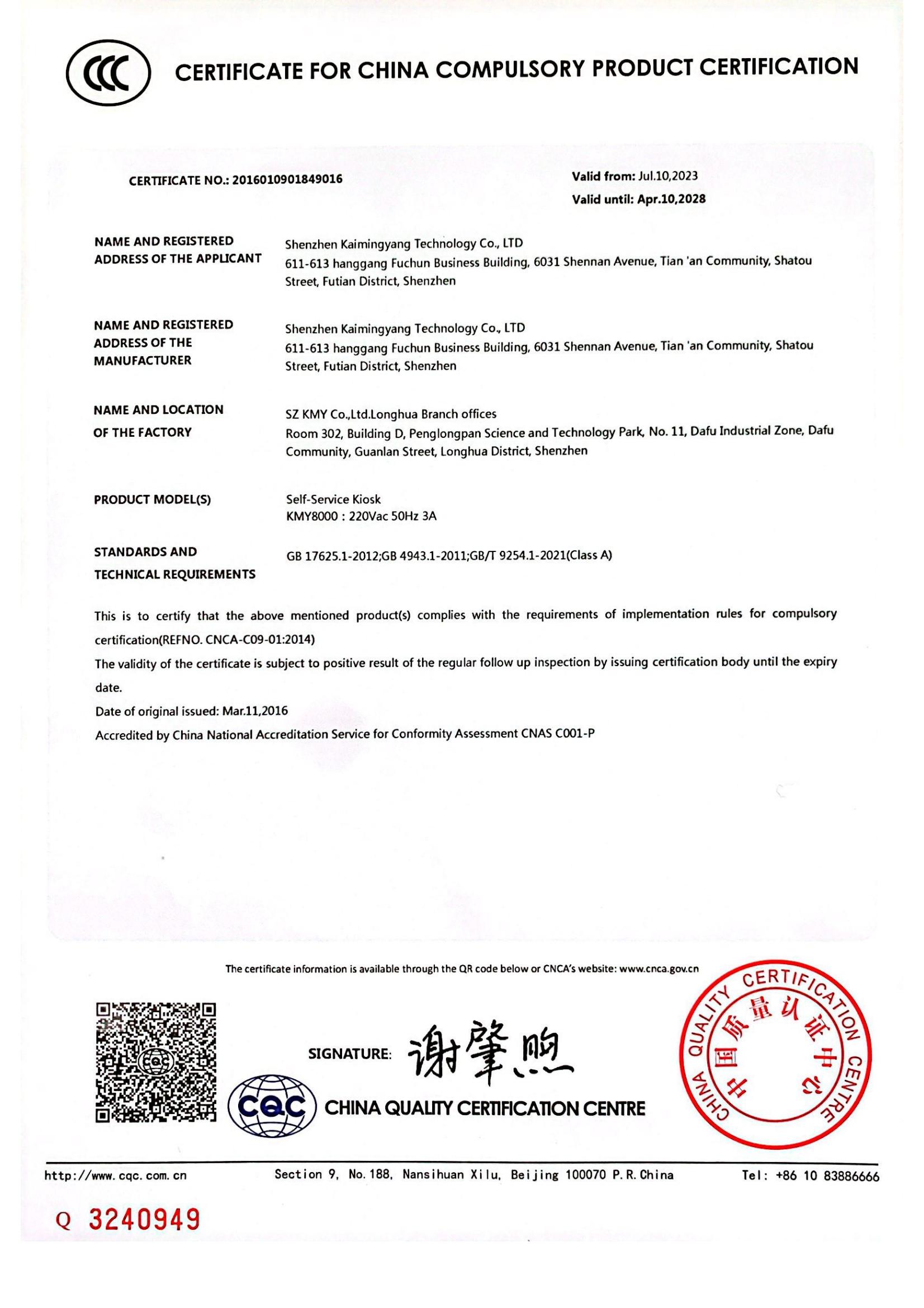 CCC强制性认证证书